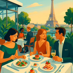 Let's say Peter has a great morning and decides to take his three friends to ADMO aux Ombres Paris at 6 PM the same day.