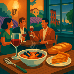 * Peter can now enjoy the dinner with his friends at Cafe Provencal St. Louis!