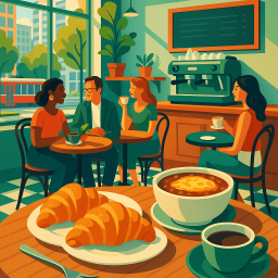 Let's say Peter has a great morning and decides to take his three friends to Cafe Renée Toronto at 6 PM the same day.