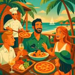 * Peter can now enjoy the dinner with his friends at Casa Nonna Aruba Noord!