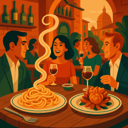 * Peter can now enjoy the dinner with his friends at Giulio Passami L'olio Roma!