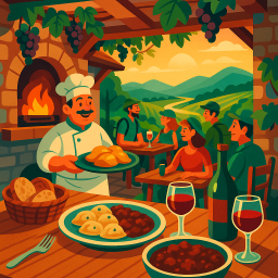 * Peter can now enjoy the dinner with his friends at Gostilna pri Kobalu Vipava!