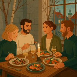 Let's say Peter has a great morning and decides to take his three friends to Høst København at 6 PM the same day.