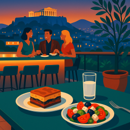 * Peter can now enjoy the dinner with his friends at Hytra Restaurant & Bar Athina!