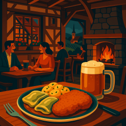 Let's say Peter has a great morning and decides to take his three friends to Landgasthaus Hirsch Winterbach at 6 PM the same day.