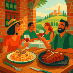 * Peter can now enjoy the dinner with his friends at Locanda Pinocchio San Miniato!