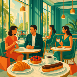 Let's say Peter has a great morning and decides to take his three friends to LV The Place Bangkok - Le Café Louis Vuitton เขตปทุมวัน at 6 PM the same day.