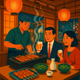 Let's say Peter has a great morning and decides to take his three friends to Makitori Shinkōbe Minato City at 6 PM the same day.
