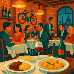 * Peter can now enjoy the dinner with his friends at Osteria dell'Oca Mantova!