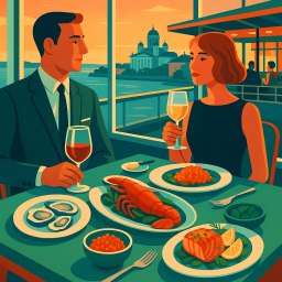 Elegant tasting menu with excellent cocktails and wine. This is a beautiful restaurant with stunning views of Helsinki. The service, food and wine could not be beat. This is a true treat meal.