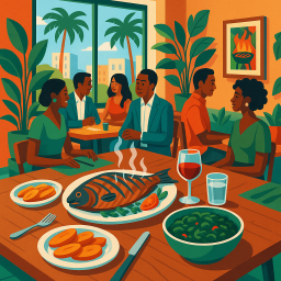 * Peter can now enjoy the dinner with his friends at Restaurant Diet Santé, Douala!