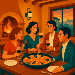 * Peter can now enjoy the dinner with his friends at Restaurante Casa Benigna Madrid!