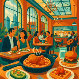 Chic, cool, fun. Beautiful, light-filled dining area with an adventurous menu and great bar. I never thought I would see the day that I recommended chicken and waffles, but it was great great great. I came back for the quiche several days later and w