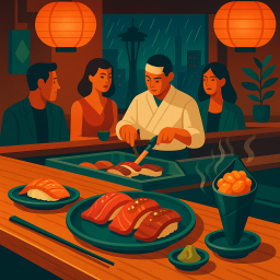 As an artist and foodie, if you are looking for an immersive omakase sushi experience, book your reservation for Sushi by Scratch in Seattle a month in advance for a party of 5 to 10. Know that there are only 10 seats. Every detail from; the chefs se