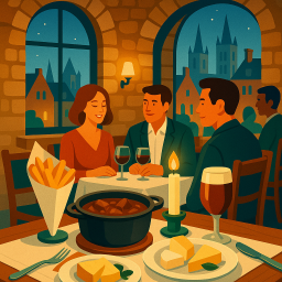 * Peter can now enjoy the dinner with his friends at 't Oud Clooster Gent!
