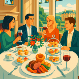 Let's say Peter has a great morning and decides to take his three friends to The Bath Priory at 6 PM the same day.