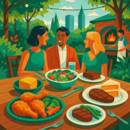* Peter can now enjoy the dinner with his friends at THE CHASTAIN - Restaurant Atlanta!