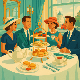 Let's say Peter has a great morning and decides to take his three friends to The Diamond Jubilee Tea Salon at Fortnum & Mason London at 6 PM the same day.