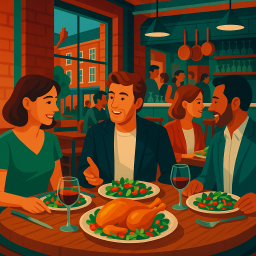 * Peter can now enjoy the dinner with his friends at The Hart - Marylebone London!