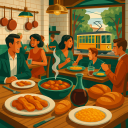 * Peter can now enjoy the dinner with his friends at Trattoria Trippa Milano!
