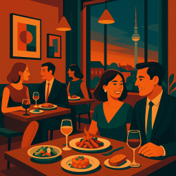 * Peter can now enjoy the dinner with his friends at Trio Berlin!